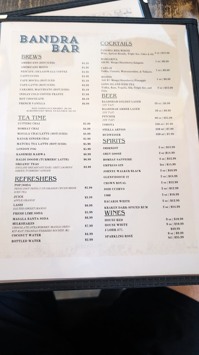 The ambiance at Bandra Cafe is both lively and welcoming. As soon as you step inside, the energetic decor and aromatic scents transport you to a bustling Indian street market, setting the stage for an unforgettable dining experience. Whether you're enjoying a brief coffee break or indulging in a full meal, the atmosphere is perfect for relaxing with friends or family.